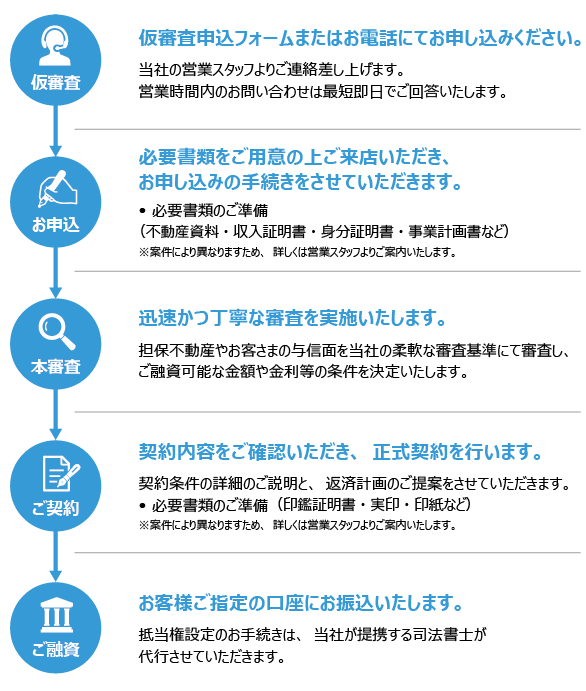 5ステップでスピーディーに融資実行