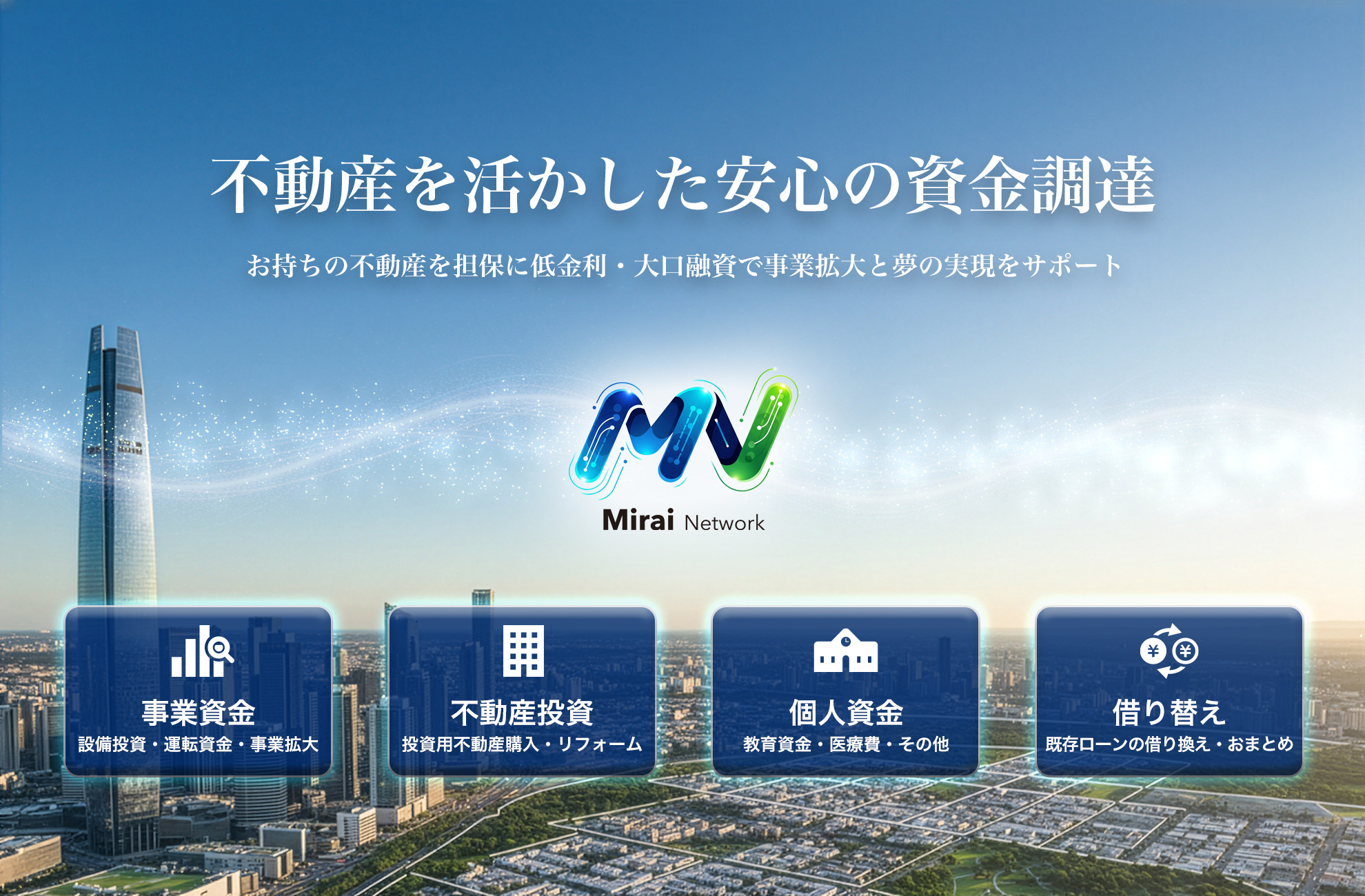 お持ちの不動産を有効活用し、低金利・大口融資で資金調達をサポートいたします